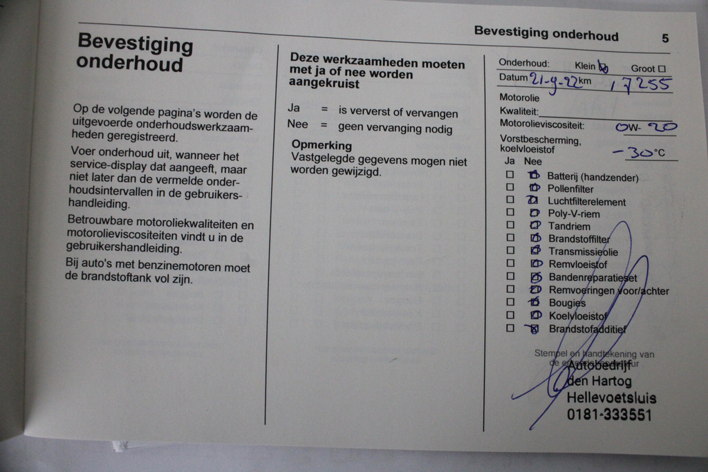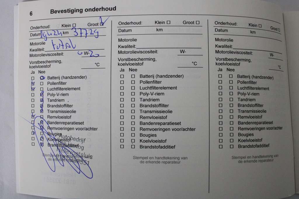 - Onderhoudsboekje aanwezig?