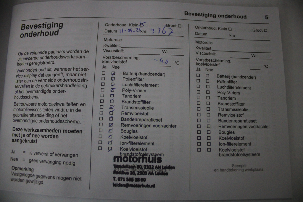 - Onderhoudsboekje aanwezig?
