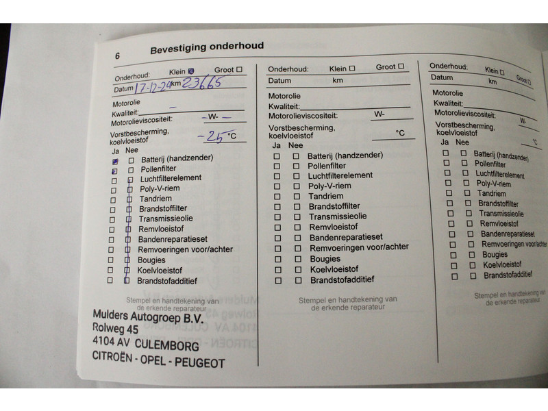 - Onderhoudsboekje aanwezig?