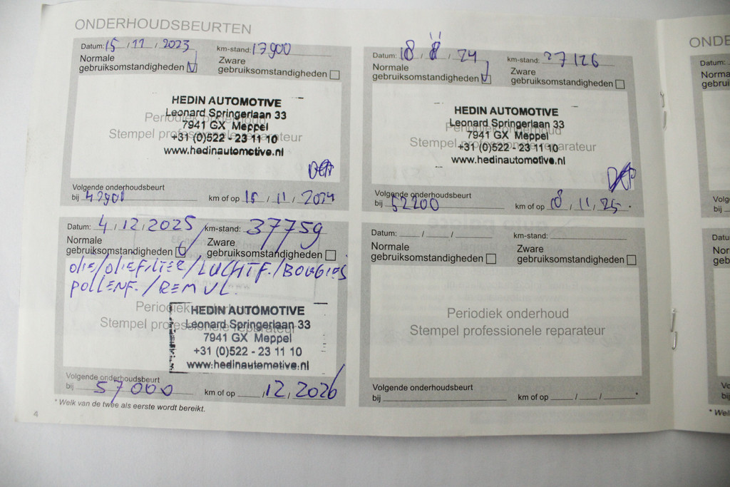- Onderhoudsboekje aanwezig?