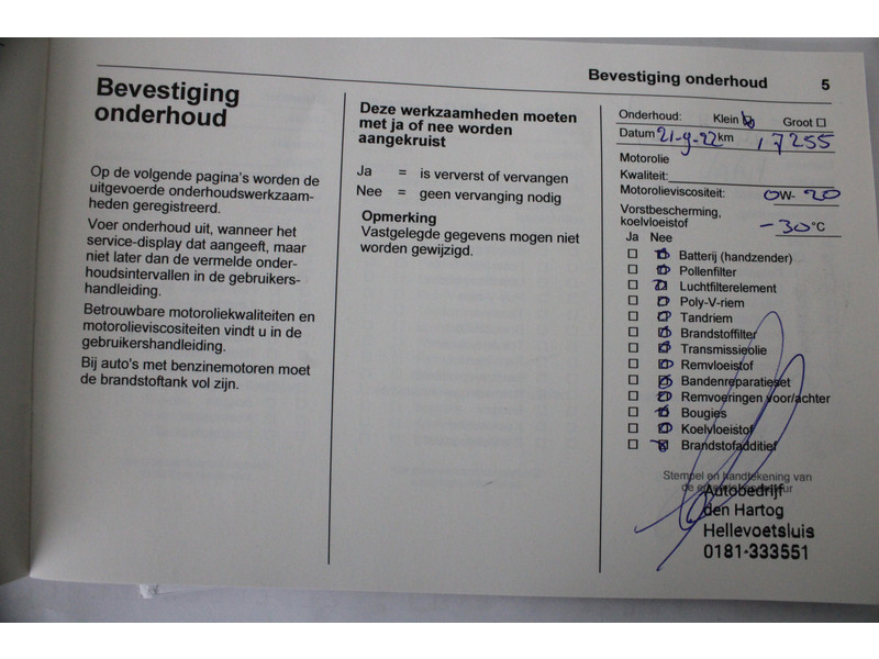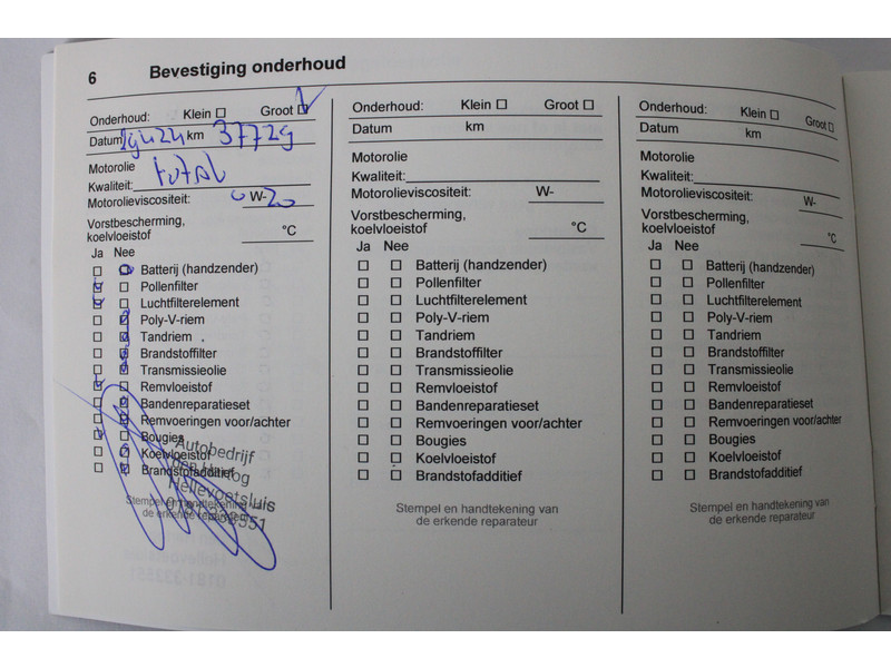 - Onderhoudsboekje aanwezig?