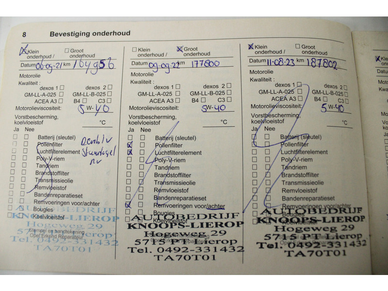 - Onderhoudsboekje aanwezig?