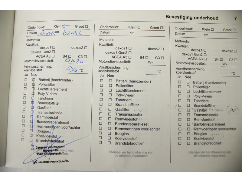- Onderhoudsboekje aanwezig?